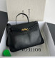 광택 있는 가죽이 자연스럽게 쌓인 루즈한 실루엣, 시그니처 위빙 스트랩과 골드 버클 장식으로 세련된 포인트