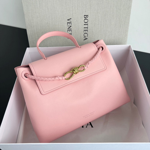 광택 있는 가죽이 자연스럽게 쌓인 루즈한 실루엣, 시그니처 위빙 스트랩과 골드 버클 장식으로 세련된 포인트